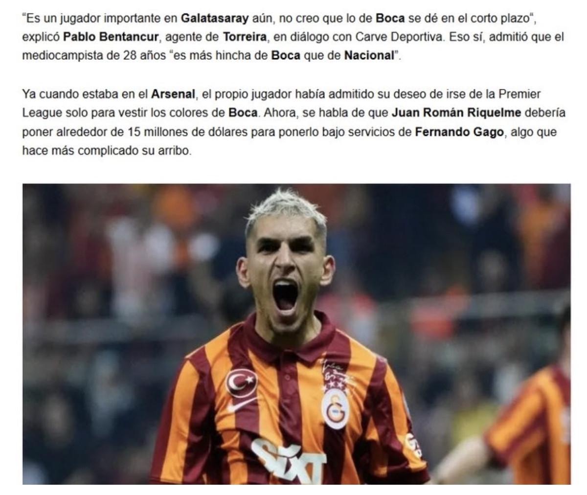 Bentancur, "Torreira, Galatasaray için hala önemli bir oyuncu. Yakın zamanda Boca Juniors'a transfer olacağını sanmıyorum." ifadelerini kullandı.