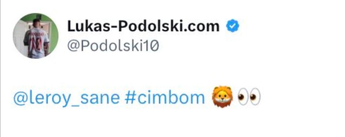 Paylaşımında Leroy Sane'yi etiketleyen Podolski, bu paylaşımına aslan emojisi ekledi ve "Cimbom" yazdı.