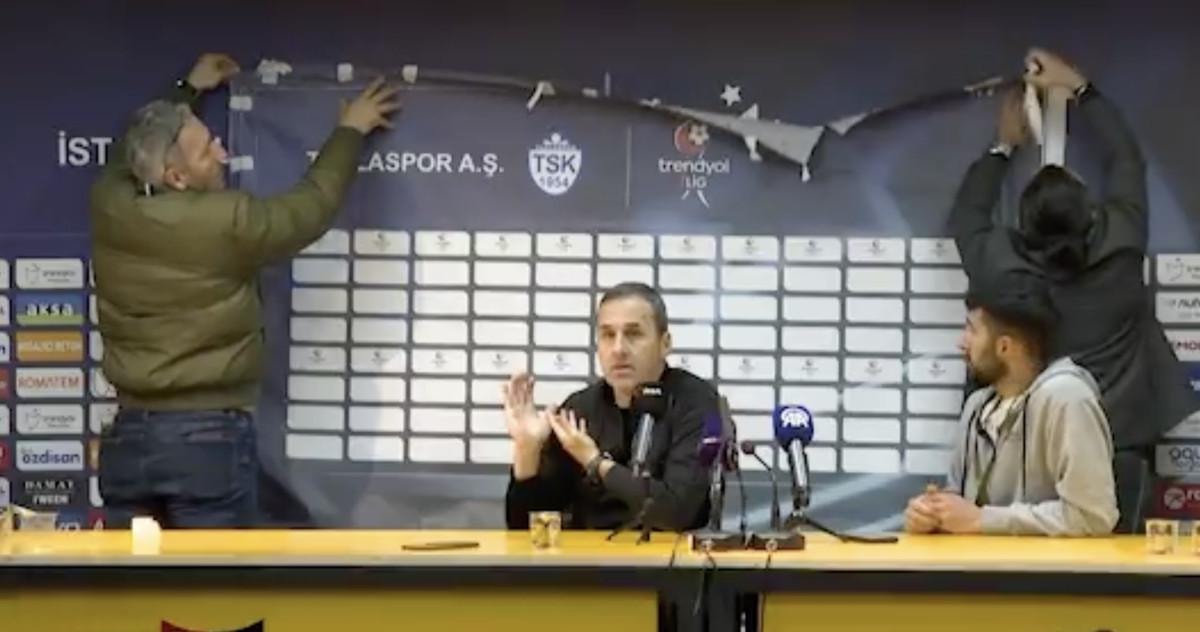 Boluspor Teknik Direktörü Yalçın Koşukavak’ın toplantıya başlayacağı anda basın toplantısının yapıldığı alanda Süper Lig'e ait reklam panosunun yerine 1. Lig reklam panosu konulmak istendi.
