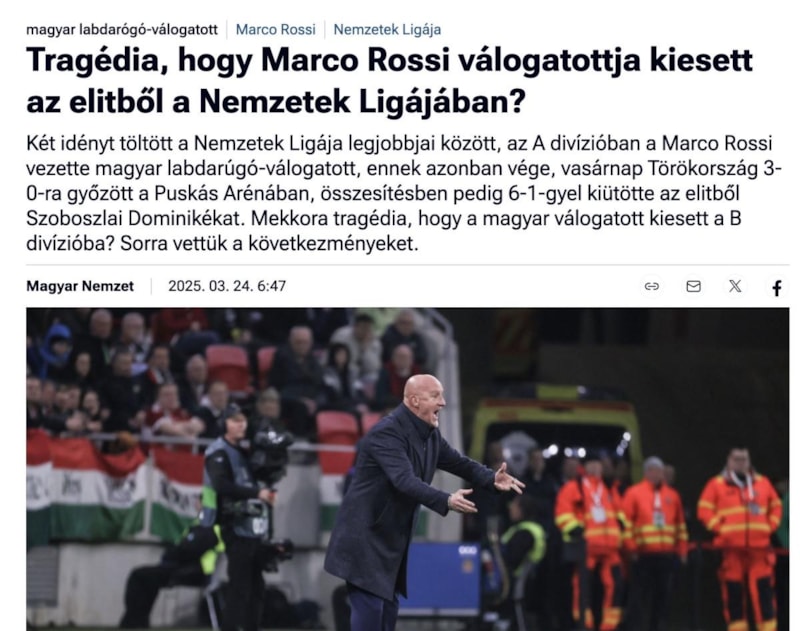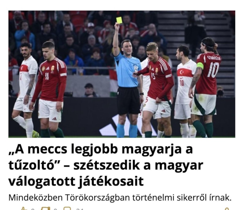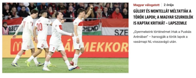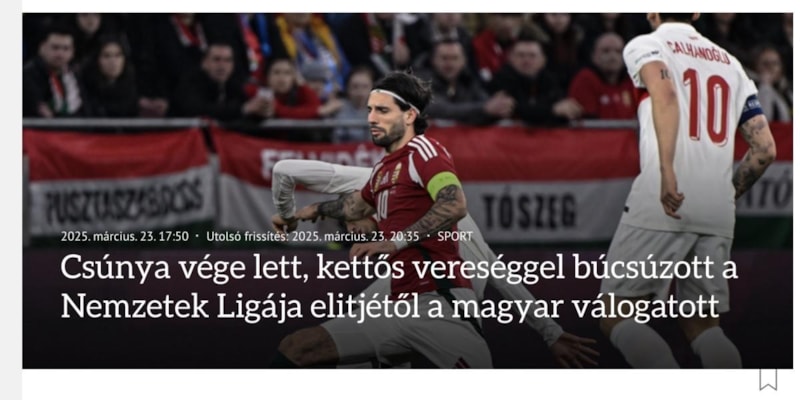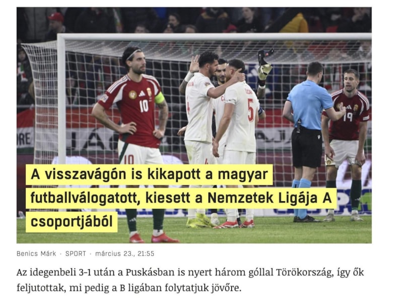 "Kötü bitti, Macaristan Milli Takımı, Milletler Ligi'nin elit takımına çift yenilgiyle veda etti. Macaristan Milli Takımı, Türkiye karşısında tarihinin en ağır yenilgisini aldı."