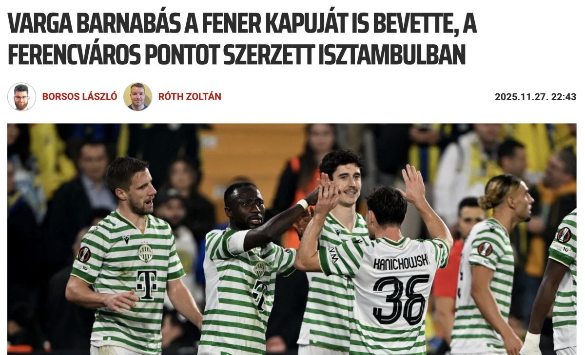 "Ferencvaros'un İstanbul'daki muhteşem beraberliği... Son dakikaları gergin geçen maçta sıkı mücadele eden ve taktiksel futbol oynayan Ferencvaros, İstanbul'da haklı olarak bir puanı aldı."