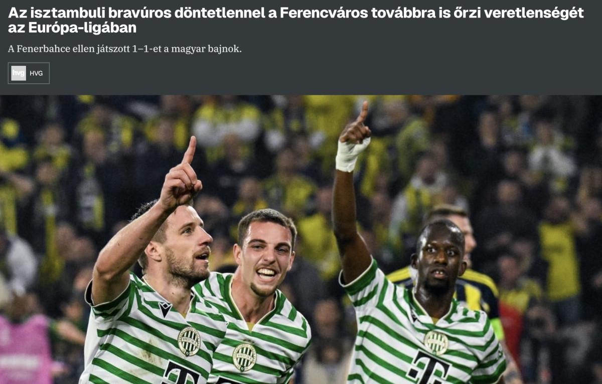 "Fenerbahçe taraftarlarının gürültüsü muhtemelen soyunma odasına kadar ulaşıyordu ama neyse ki Ferencvaros Avrupa'da pek de alışılmış olmayan bu atmosferden etkilenmedi, İstanbul'da puanı kaptı. Macaristan şampiyonu, Avrupa Ligi normal sezonunda hala yenilgisiz ve bir kez daha yükselmeye yakın."