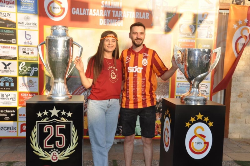 Galatasaray'ın 2024-2025 sezonu şampiyonluk kupası ve Türkiye Kupası, Salihli Galatasaray Taraftarlar Derneği öncülüğünde düzenlenen organizasyonda sergilendi.