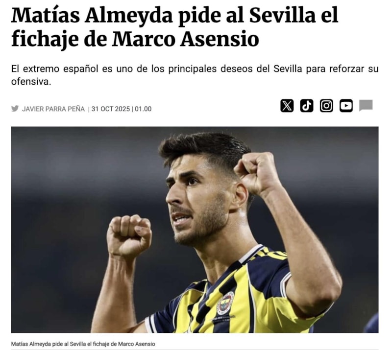 Haberde; Marco Asensio'nun, teknik direktör Almeyda'nın Sevilla'ya dayatmak istediği hızlı, yüksek baskılı ve set hücumu odaklı oyun için biçilmiş kaftan olduğu yazıldı.