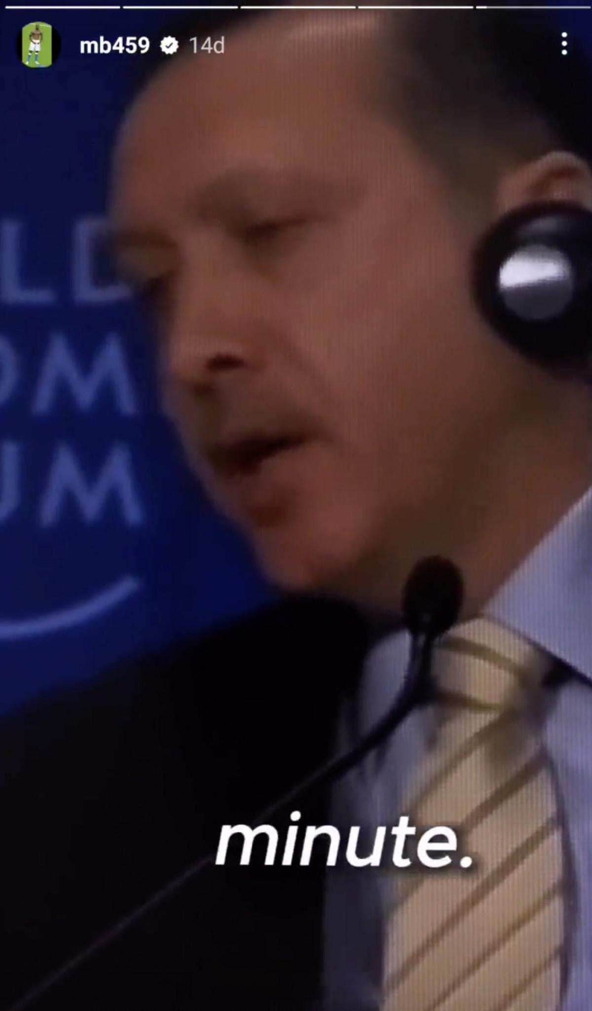 Balotelli, Instagram paylaşımında Cumhurbaşkanı Recep Tayyip Erdoğan'ın "one minute" çıkışını yayınladı.
