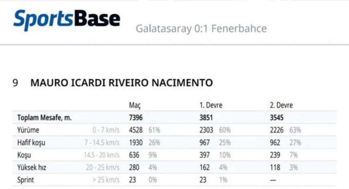 31 yaşındaki golcü oyuncunun derbide yalnızca 23 sprint attığı ortaya çıkarken Arjantinli golcünün karşılaşmanın ikinci yarısında sprint atmamış olması dikkatleri çekti. Arjantinli yıldızın Fenerbahçe derbisindeki istatistikleri taraftarların tepkisini topladı.