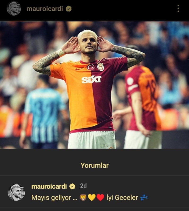Icardi, Adana Demirspor karşılaşmasının ardından paylaşımda bulundu. Arjantinli yıldız, paylaşımında, "Mayıs geliyor, iyi geceler." ifadelerini kullandı.
