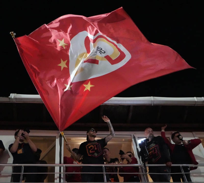 Balkona çıkan oyuncular, tezahüratlarla taraftarlara eşlik etti. Kutlamalar sabahın erken saatlerine kadar devam etti.