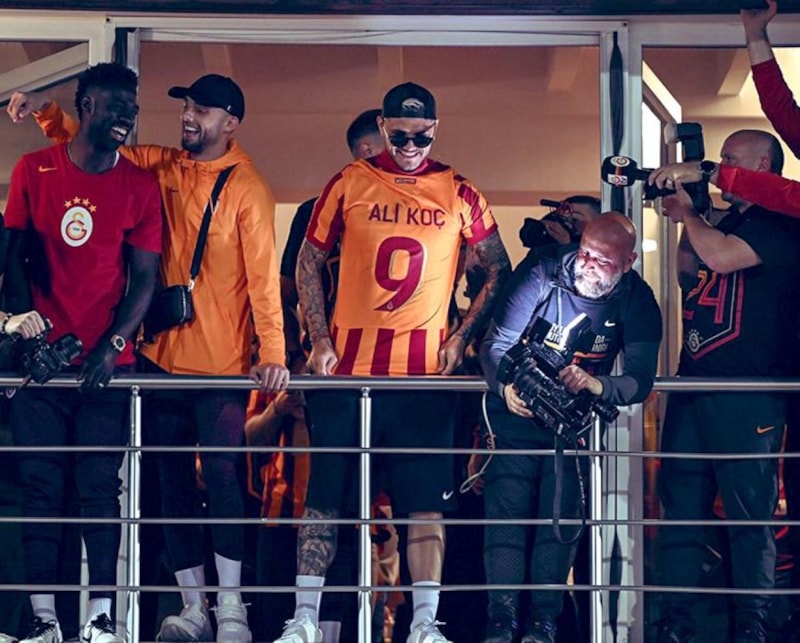 Taraftarla kutlama yapan Icardi önce "Fener ağlama" tezahüratını başlattı, daha sonra ise Fenerbahçe Başkanı Ali Koç'un adının yazılı olduğu Galatasaray formasını giydi.