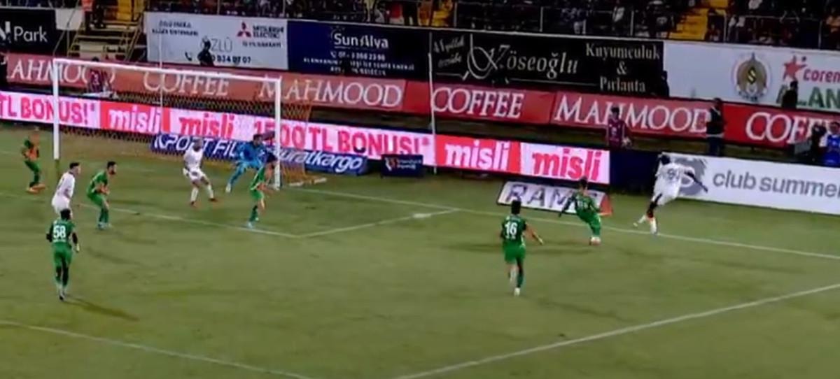 Alanya Oba Stadyumu'nda oynanan müsabakanın ilk yarısında konuk takım sarı-kırmızılılar, şık bir gol kaydetti.