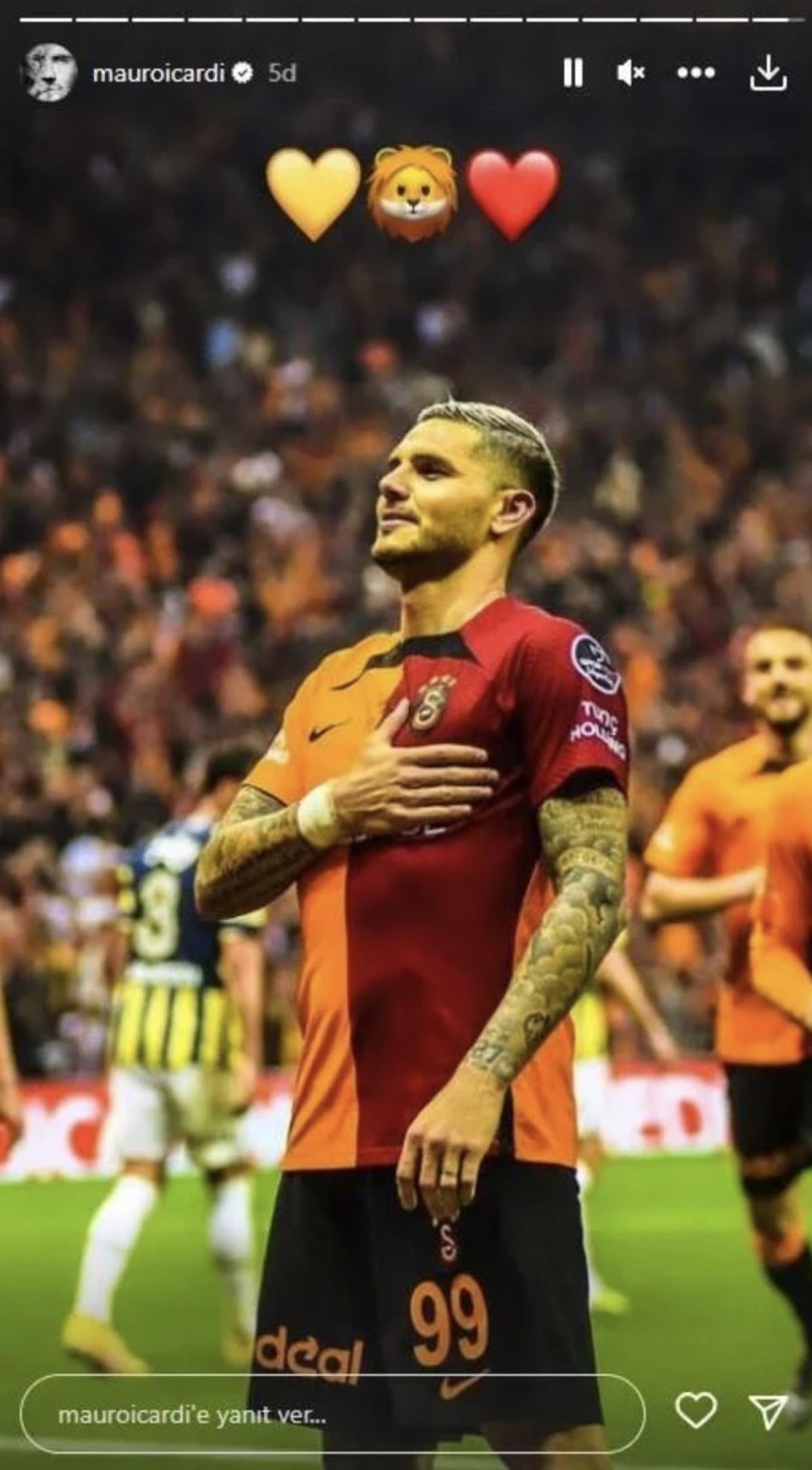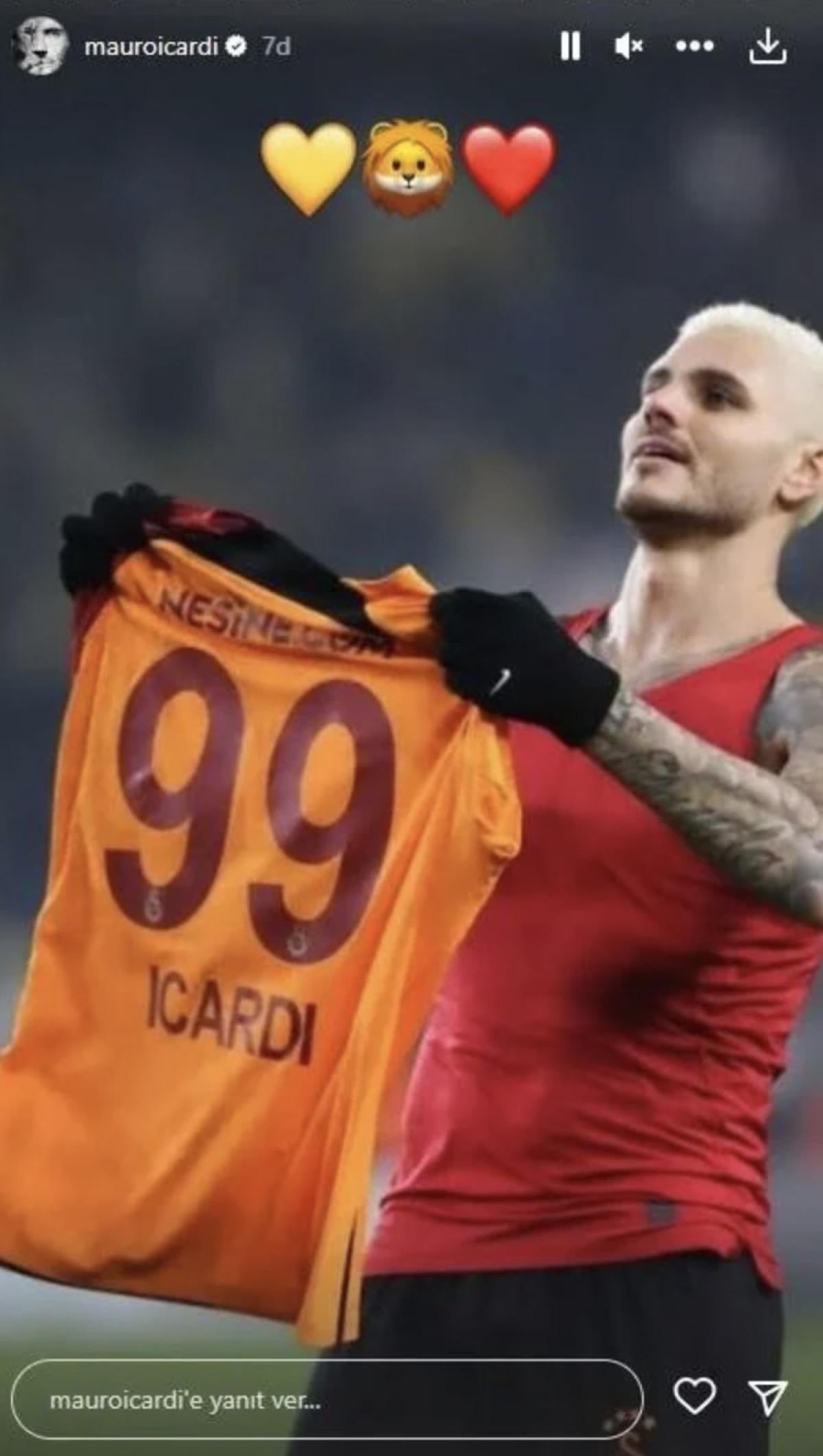 Öte yandan Mauro Icardi bir sonraki paylaşımlarında Fenerbahçe maçında Galatasaraylı formasını paylaştı.