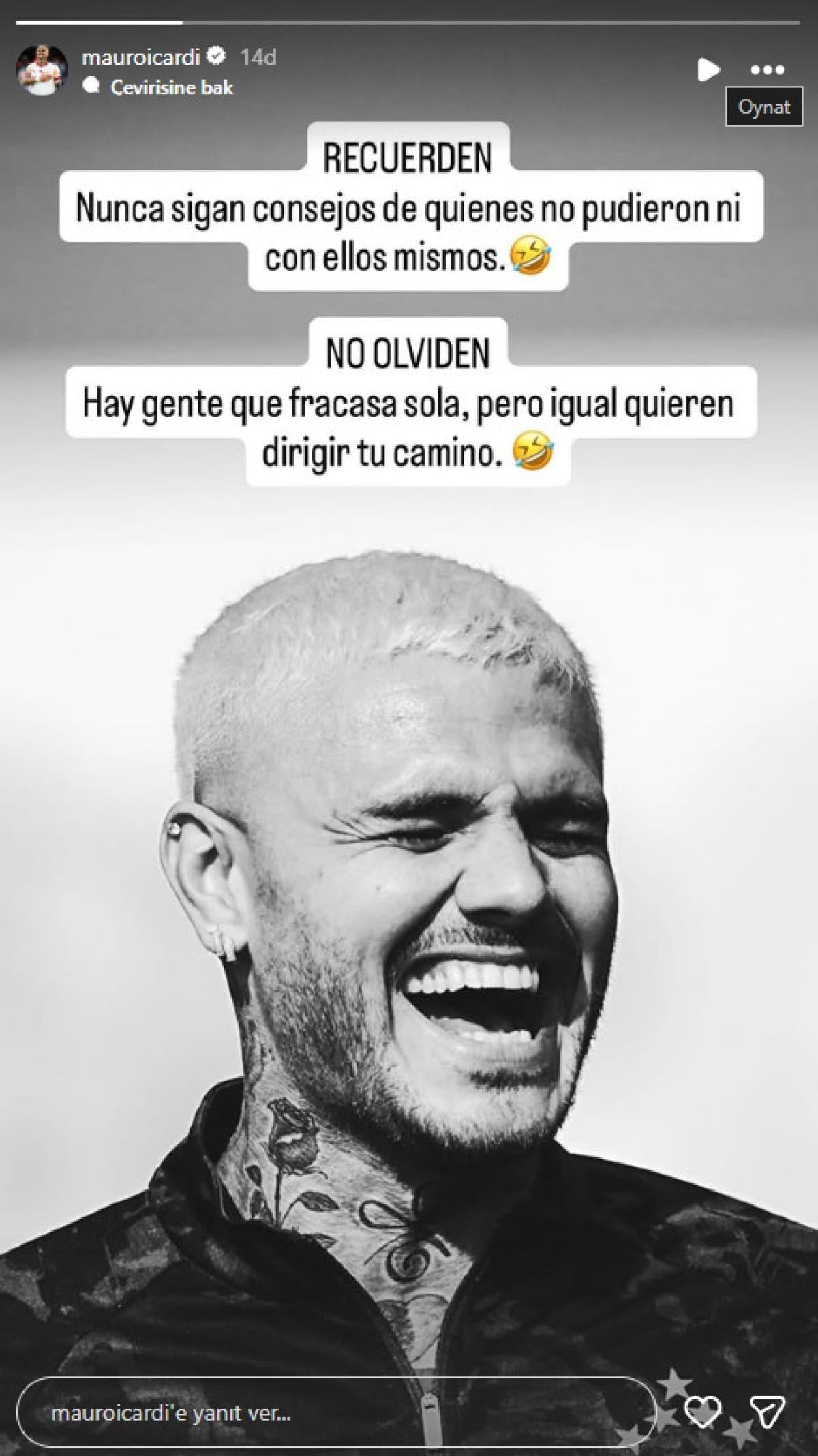 Icardi paylaşımında, kendilerine bile yetemeyenlerin tavsiyelerine kulak asmamak gerektiğini vurguladı.