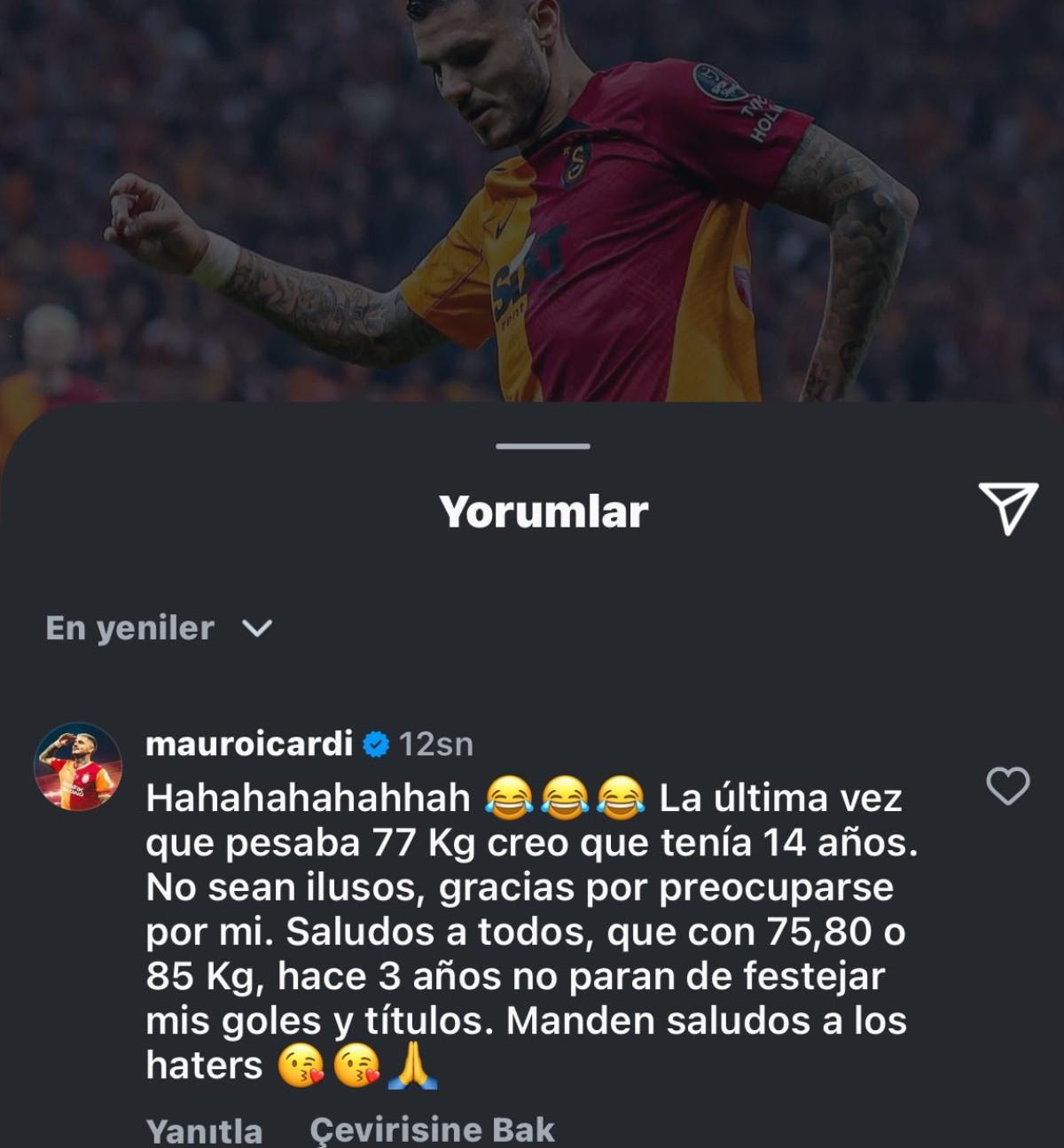 - Sahalara dönüşünden itibaren kilo eleştirilerine maruz kalan Icardi, sosyal medyada bu eleştirilere yanıt verdi.
