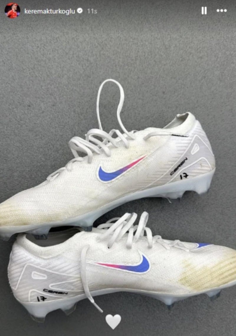 Fenerbahçe'nin Portekiz takımı Benfica'dan transfer ettiği Kerem Aktürkoğlu da eşi Ceren Aktürkoğlu'nun adını kramponuna yazdırmıştı.