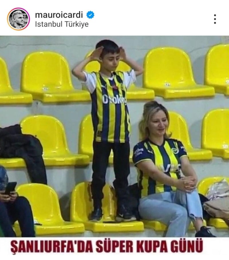 Öte yandan Icardi'nin gönderisinde Fenerbahçe'nin U19 takımına ve kendi gol sevincini yapan Fenerbahçeli çocuğa da yer vermesi dikkat çekti.
