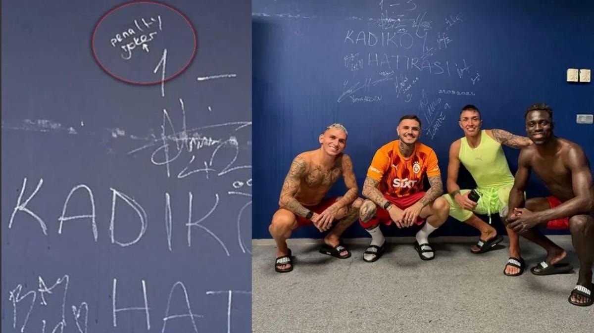 Galibiyeti soyunma odasında kutlayan Galatasaray'da duvar yazısında, "Penaltı jokeri" ifadesi yer aldı.