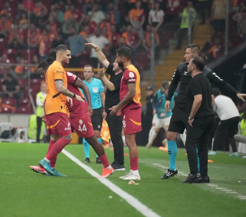 Maç sonrasında taraftarlar, Galatasaraylı oyuncuları çağırdı. Tüm takım, çocukları ile birlikte tribünlere giderken 1 isim eksikti. Bu anları yedek kulübesinden izleyen Arjantinli futbolcu, oyundan çıkarken sergilediği sinirli tavrını da devam ettirdi.