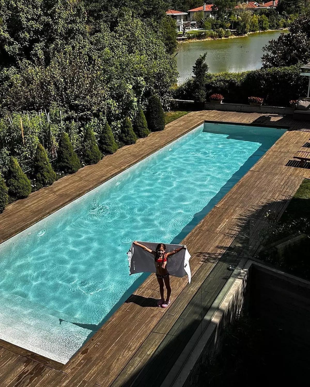 Villanın içerisinde özel bir yüzme havuzu, hobi bahçesi, geniş bir sinema salonu bulunuyor.