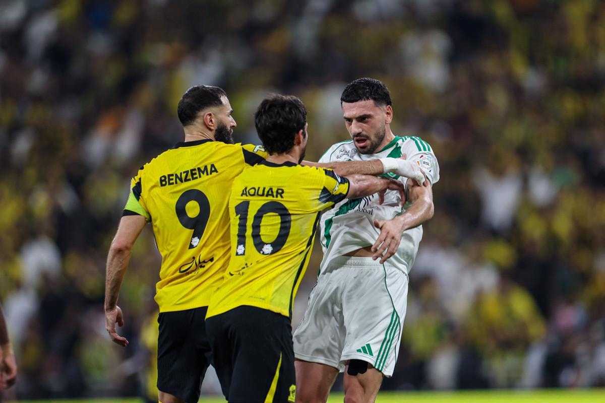 Karşılaşmanın 30. dakikasında Al-İttihad'ın Houssem Aouar ile gerçekleştirdiği atak sonrası Merih Demiral ile Aouar arasında tansiyon yükseldi.