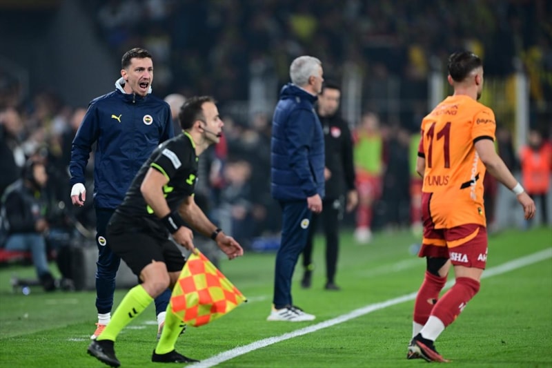 Derbi sonrası hakem Cihan Aydın'a giden Mert Hakan Yandaş, "Ben neden kırmızı kart gördüm?" diye sordu. Cihan Aydın, Mert Hakan'a cevap vermedi ve sarı-lacivertli futbolcu soyunma odasına gitti.