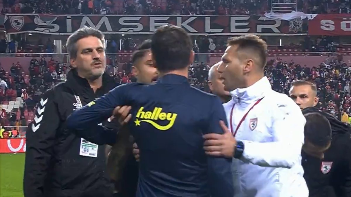 Araya giren görevliler olayın büyümesini önlerken Samsunspor'dan Soner Gönül, Mert Hakan Yandaş'ı iterek tepki gösterdi.