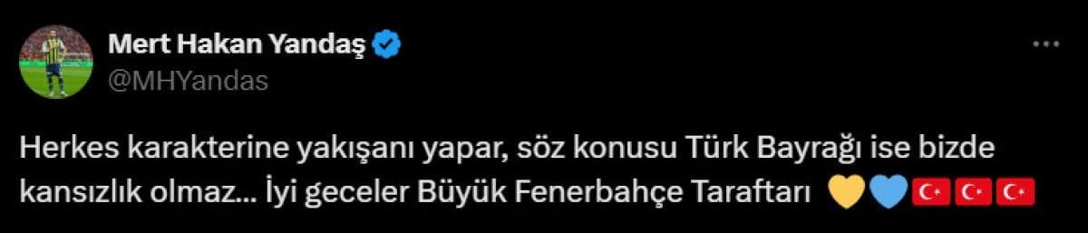 Müsabakanın ardından ise Fenerbahçe'nin kaptanlarından olan Mert Hakan Yandaş, çarpıcı bir paylaşıma imza attı.