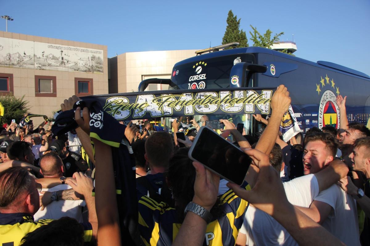Güvenlik şeridinin dışında bulunan taraftarlar, tezahürat ve çiçeklerle karşıladığı futbolculara forma imzalattı. Teknik Direktör İsmail Kartal, Bosna Hersekli golcü Edin Dzeko ve Sırp futbolcu Dusan Tadic de yoğun ilgi gören futbolcular arasında yer aldı.