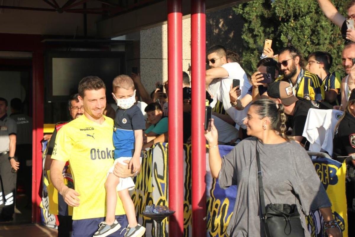 Futbolcuları karşılayan taraftarlar arasında yer alan 4 yaşındaki lösemi hastası Ali Asil’i fark eden takım kaptanlarından Mert Hakan Yandaş, Ali Asil’i kucağına alarak takım otobüsün içerisine götürdü ve futbolcularla tanıştırdı.