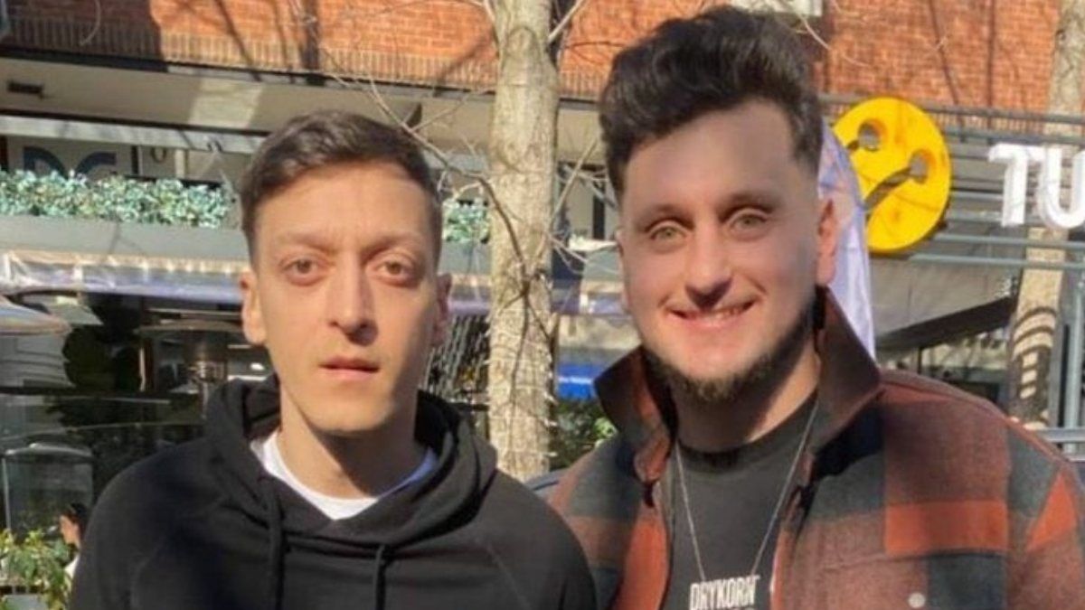 Koltuk değnekleriyle sokağa çıkan Özil, bir hayranıyla fotoğraf çektirdi.