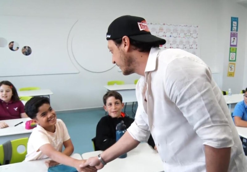 Fenerbahçe'nin eski futbolcusu Mesut Özil, özel bir okulda öğrencilerle bir araya geldi.
