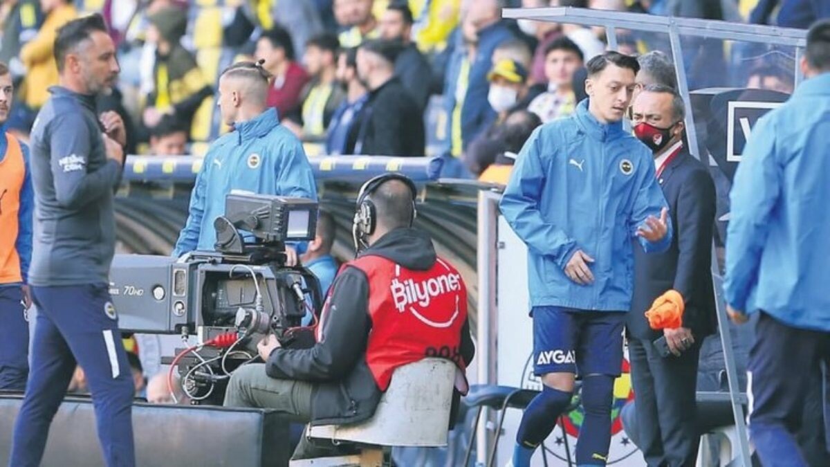 Yıldız futbolcu, gribal enfeksiyonu atlattıktan sonra kadroya dahil edilse de ilk 11'de tercih edilmedi. Bir ara kenarda ısındırılan Mesut Özil, beşinci değişiklikte de oyuna alınmayınca sinirlenerek ısınma yeleğini Vitor Pereira’nın önüne doğru attı.