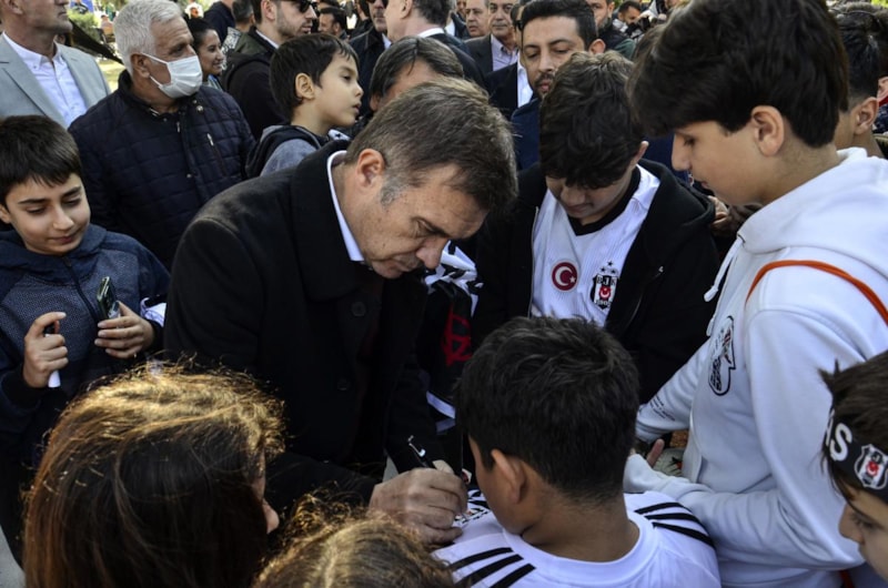 Siyah-beyazlı taraftarlar, açılış öncesi Feyyaz Uçar ile fotoğraf çektirerek, imza aldı.