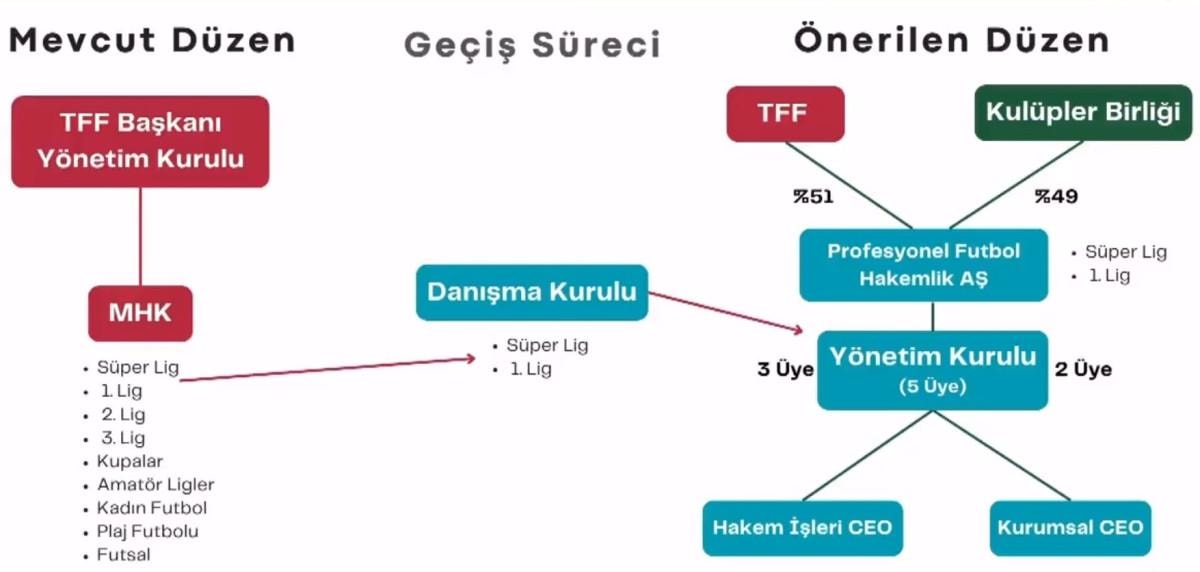 Federasyon başkanımız kulüplere, 'Bütün hakemleri siz atayabilirsiniz. Siz tamamen yeni hakemlik sisteminde söz sahibi olun.' dedi. Kulüpler bu teklifi kabul etti. Yabancı VAR hakemi için karar şu an için TFF'nin yönetim kurulunda. Şu anki düzende TFF Yabancı Hakem kararı alabilir. Ama yeni sistemde bunu Danışma Kurulu tavsiye edecek. Mesela 'Gol Çizgisi Teknolojisi kullanmak istiyoruz' diye önerecek kurul. MHK'nin talebiyle yönetim kuruluna gidecek. TFF Başkanı da zaten bu kararları onaylayacağını belirten açıklama yapmıştı.