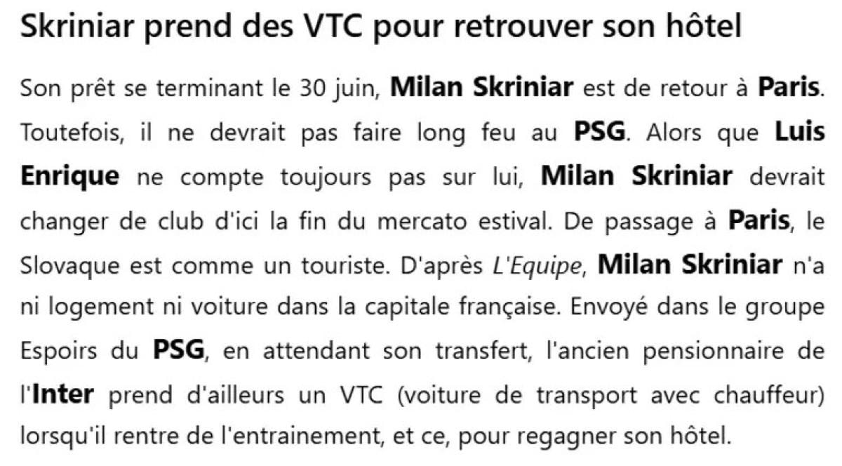 Fransız gazetesindeki habere göre günlerdir bir otelde kalan Skriniar, kiralık araç kullanıyor.
