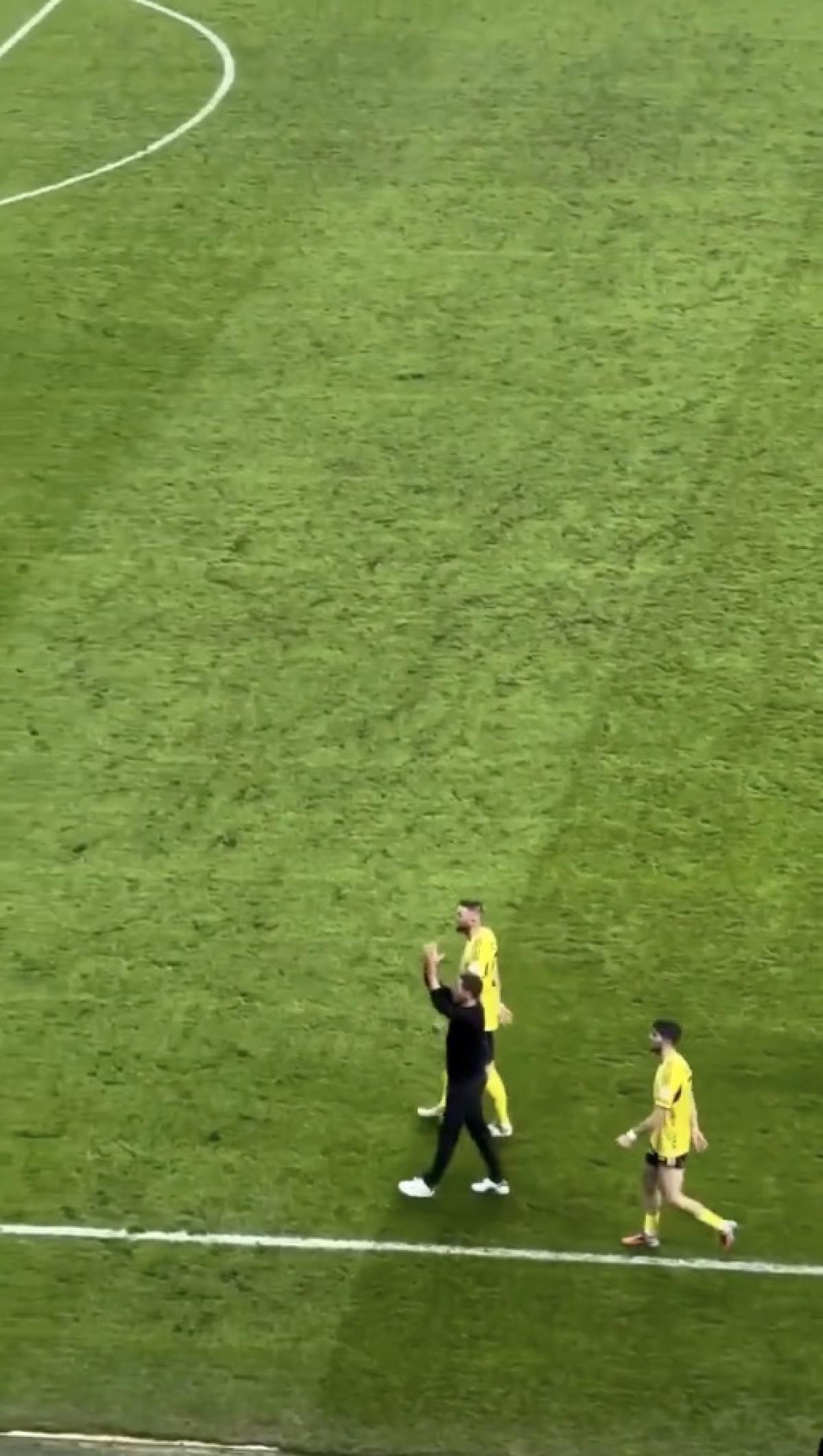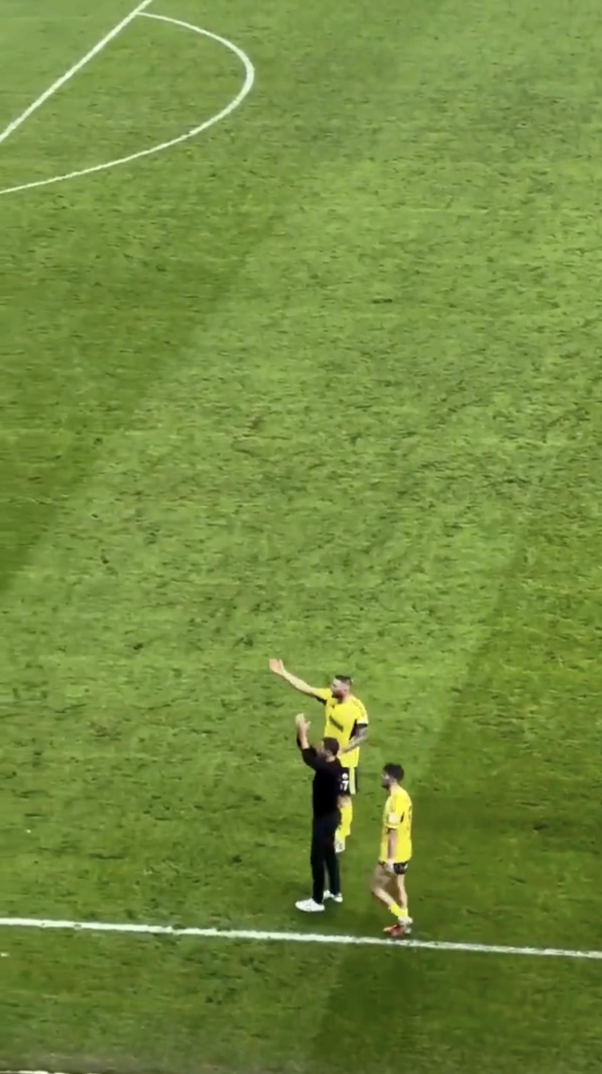 Mücadelenin ardından Fenerbahçe Teknik Direktörü Domenico Tedesco, Milan Skriniar ve İsmail Yüksek, deplasman taraftarlarının olduğu tribüne doğru gitti.