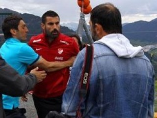 Milli Takım'ın Fenerbahçeli file bekçisi Volkan Demirel, Avusturya kampında futbolcuları dağdan "flying fox" yaparak atlarlarken görüntülemek isteyen Habertürk Foto Muhabiri Vedat Danacı'ya saldırdı.