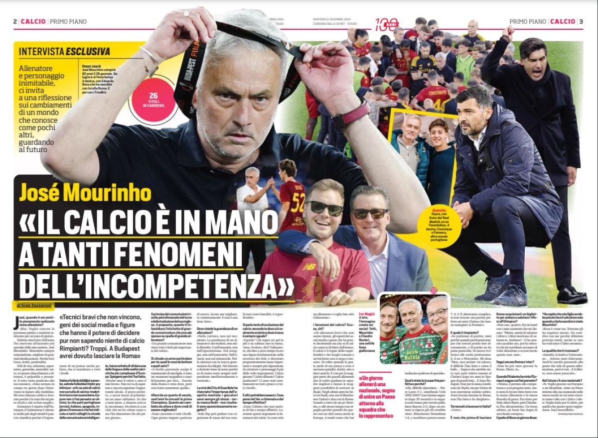 Teknik Direktör Jose Mourinho, Türk futbolu, Fenerbahçe ve geleceğe yönelik düşüncelerini İtalya'nın ünlü spor gazetesi Corriere dello Sport’a açıkladı.