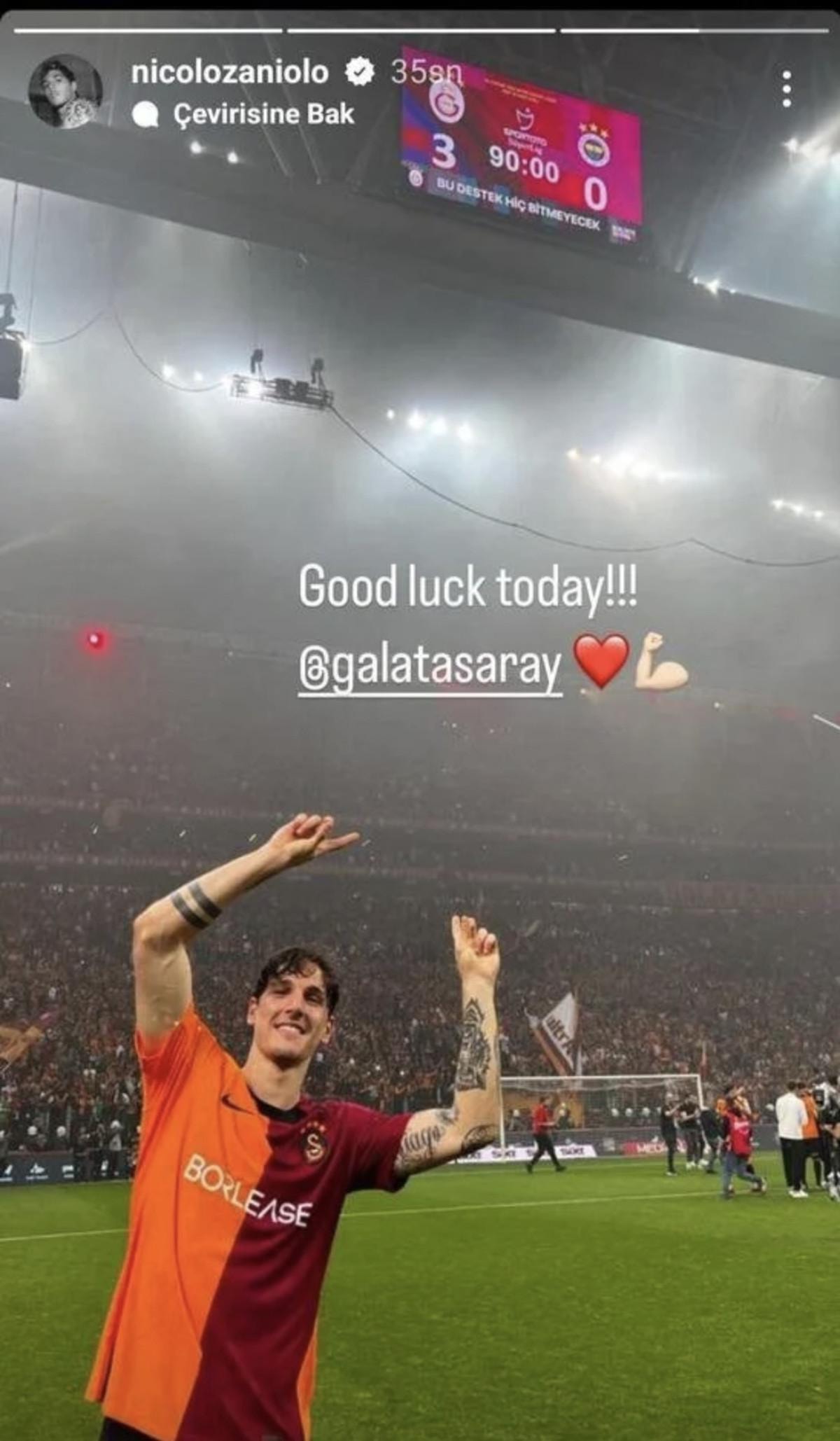 Yaz transfer döneminde Galatasaray'dan İngiltere Premier Lig ekibi Aston Villa'ya kiralık olarak transfer olan İtalyan futbolcu Nicolo Zaniolo, Fenerbahçe derbisi öncesinde sosyal medya hesabından bir paylaşım yaptı.