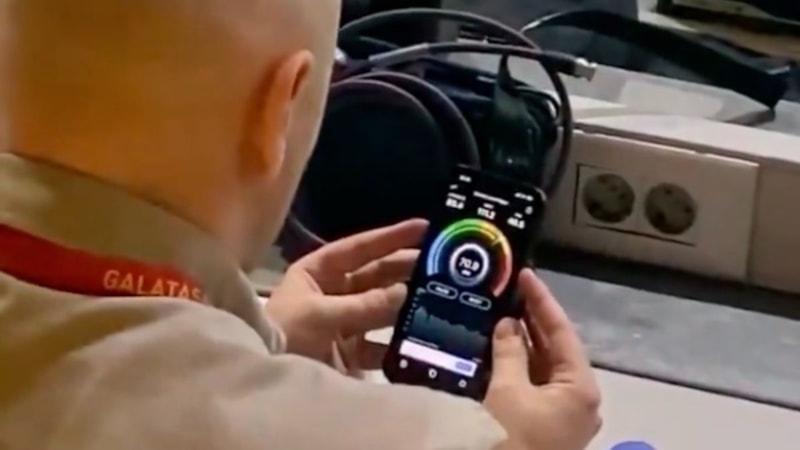 Norveç'ten gelen gazeteciler, mücadele esnasında desibel testi yapmak için telefonlarına sarıldı.