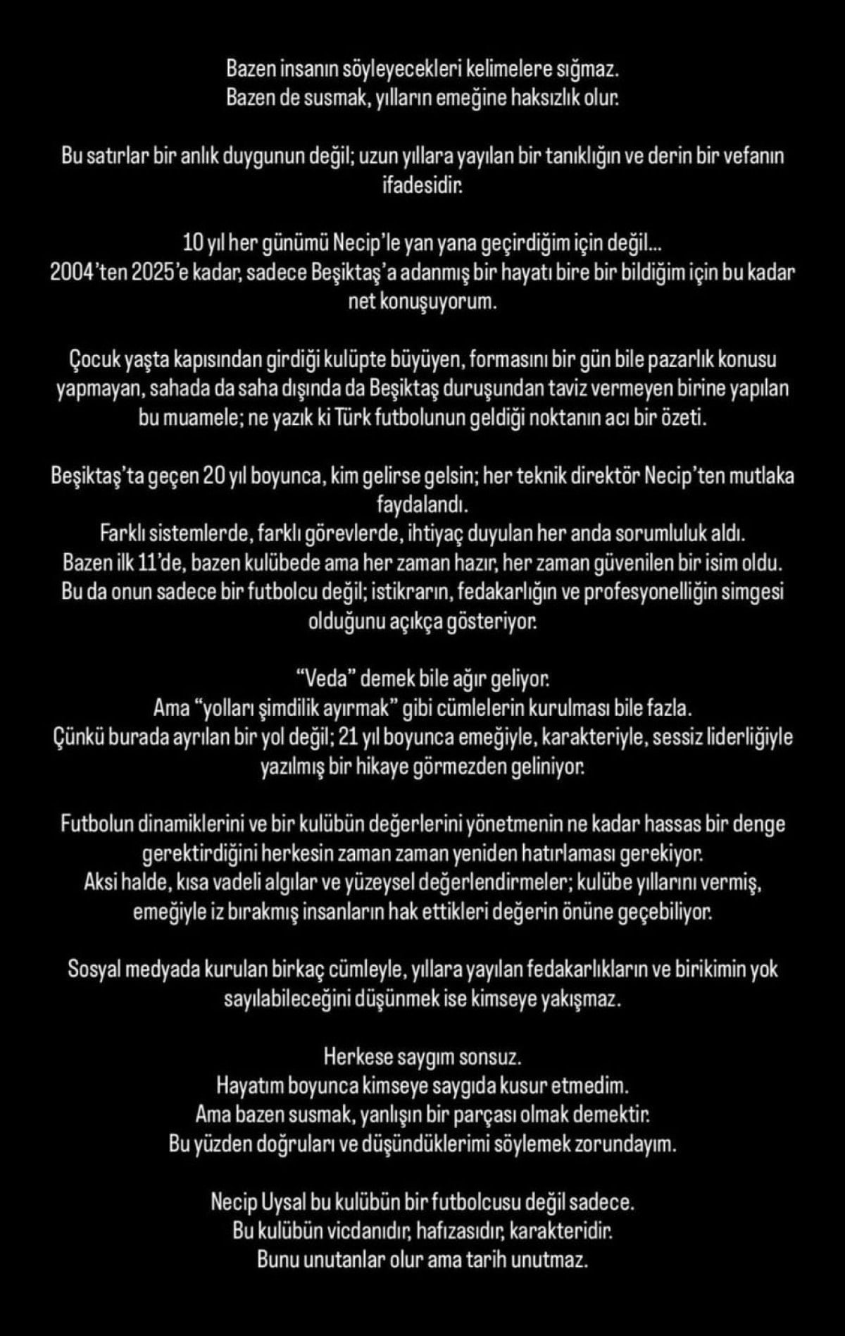 - Necip'in sadece bir oyuncu değil, Beşiktaş'ın vicdanı ve hafızası olduğunu belirtti.