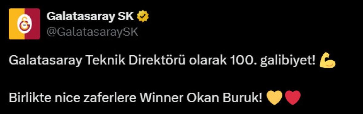 Geride kalan bölümde ligdeki 99 maçta 81 galibiyet alan Buruk, 12 beraberlik, 6 yenilgi gördü.