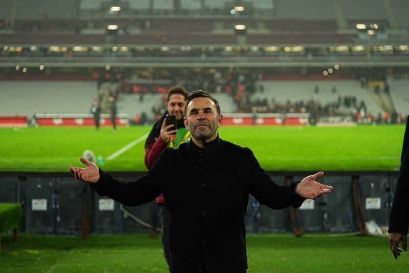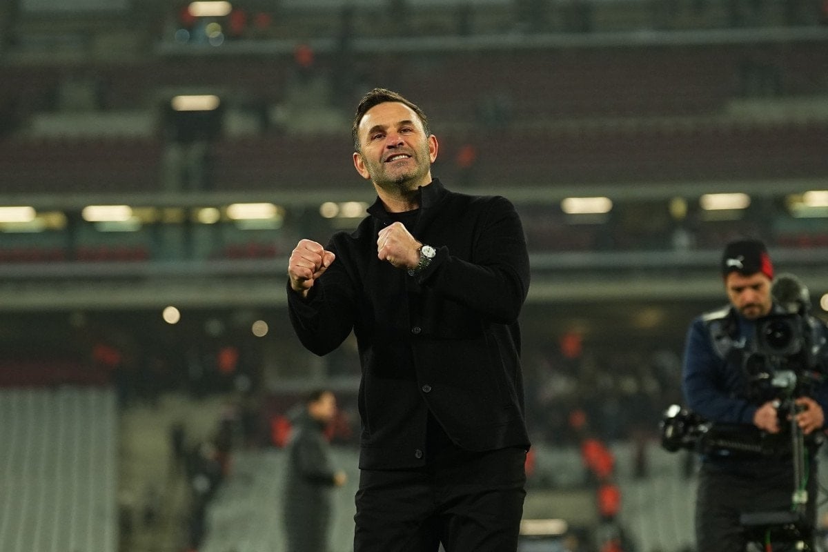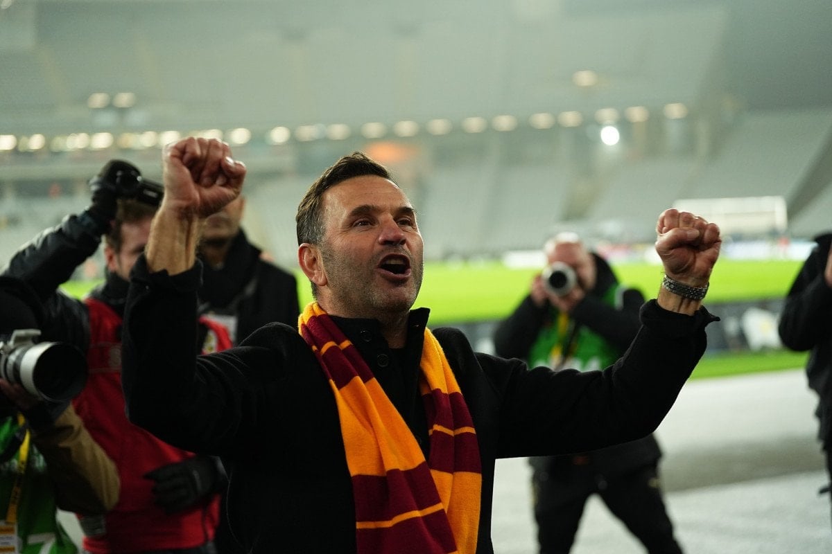Daha sonra Galatasaraylı taraftarlar, Teknik Direktör Okan Buruk’u tribüne çağırdı.