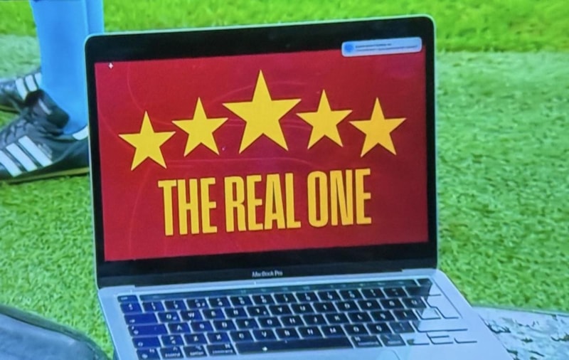 Okan Buruk, 5 yıldızlı Galatasaray logosunun olduğu laptop'u yayıncı kuruluşun kamerasının önünde koyarak Jose Mourinho ve Fenerbahçe'ye gönderme yaptı.