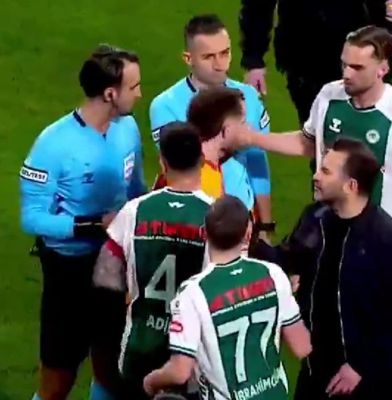 Sarı-kırmızılı takımın teknik patron Okan Buruk, Konya'daki son düdük sonrası hakemlerin yanında soluğu aldı.