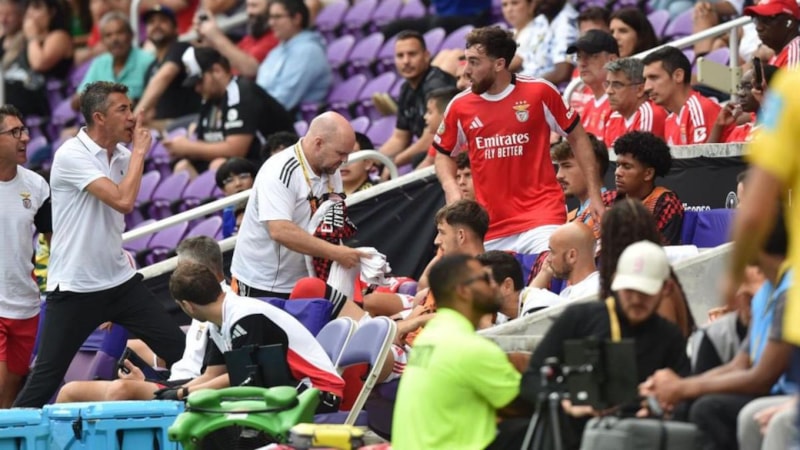 Benfica forması giyen Orkun Kökçü, 2025 Kulüpler Dünya Kupası'nda Auckland City ile oynadıkları maçta teknik direktör Bruno Lage ile tartıştı.