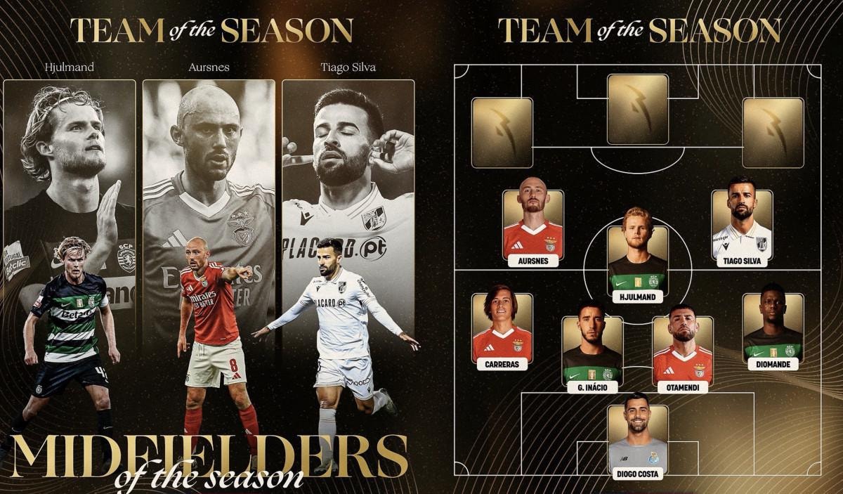 Portekiz Ligi'nin resmi hesabından sezonun en iyi orta sahalarının Hjulmand, Aurnes ve Tiago Silva olduğu duyuruldu.