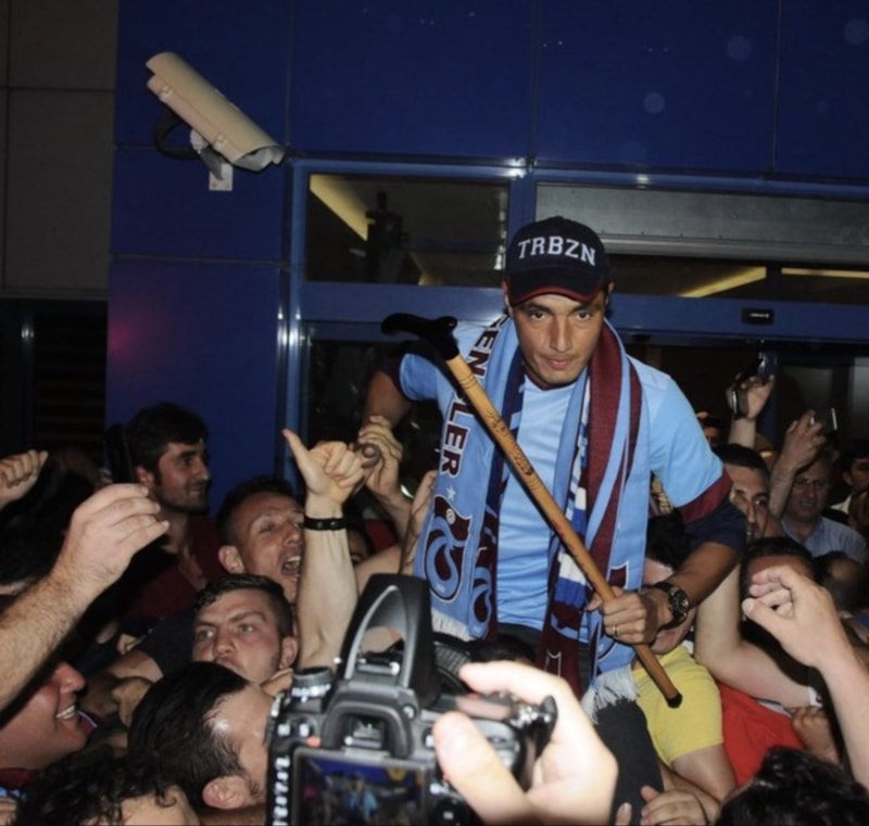 Trabzonspor'a transfer olduğu ilk gün bastonla karşılanan ünlü golcü, yıllar sonra yeniden Trabzon'a ayak bastığında da aynı şekilde bastonla karşılandı.
