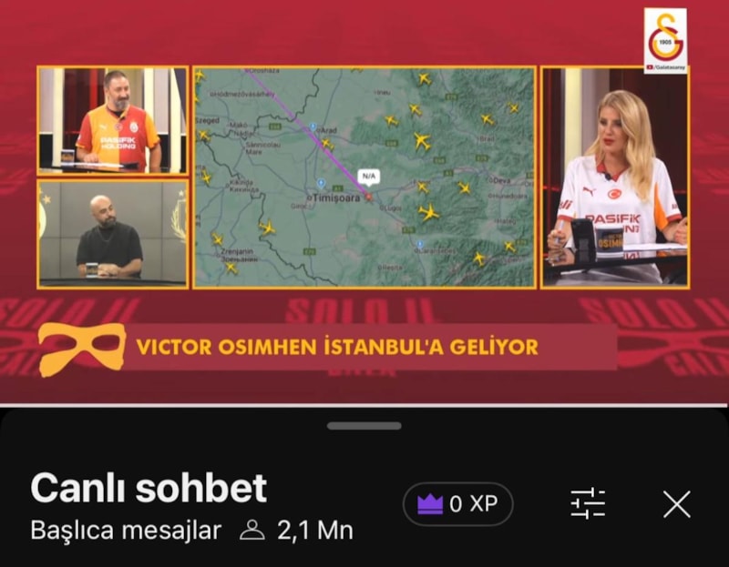 Osimhen’in uçağının takibini içeren Galatasaray YouTube yayını rekor ilgi gördü. Canlı yayını 2 milyondan fazla kişi izleyerek takımıyla buluşma anına ortak oldu.