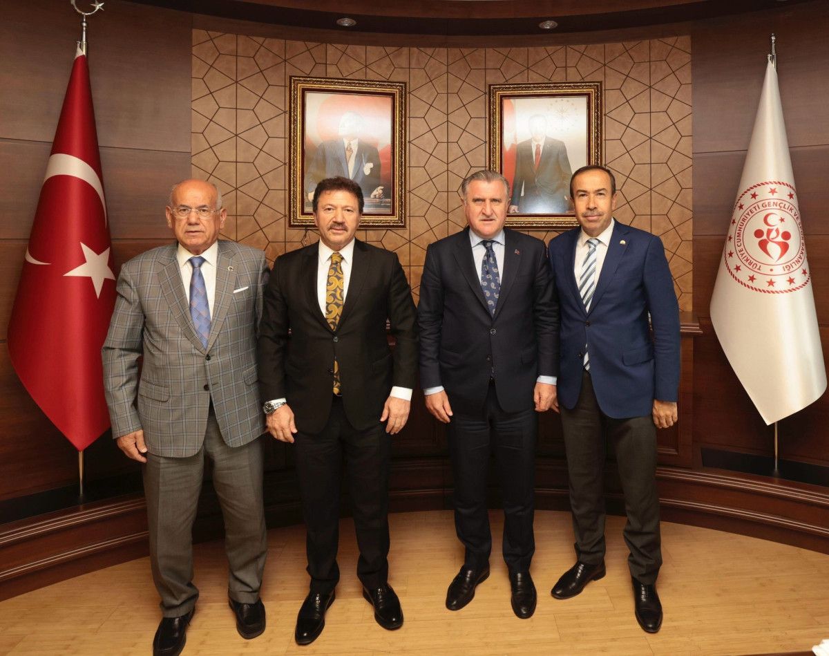 Türkiye Şoförler ve Otomobilciler Federasyonu (TŞOF) Genel Başkanı ve Ankaragücü Onursal Başkanı Mehmet Yiğiner, beraberindeki heyet ile birlikte Gençlik ve Spor Bakanı Osman Aşkın Bak’ı makamında ziyaret etti.