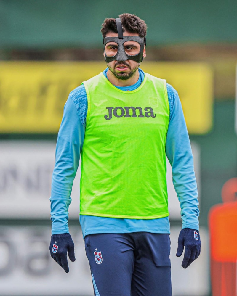 Trabzonspor'un tecrübeli oyuncusu Ozan Tufan, burnundaki kırık nedeniyle özel maske ile antrenmanlarına devam edecek.